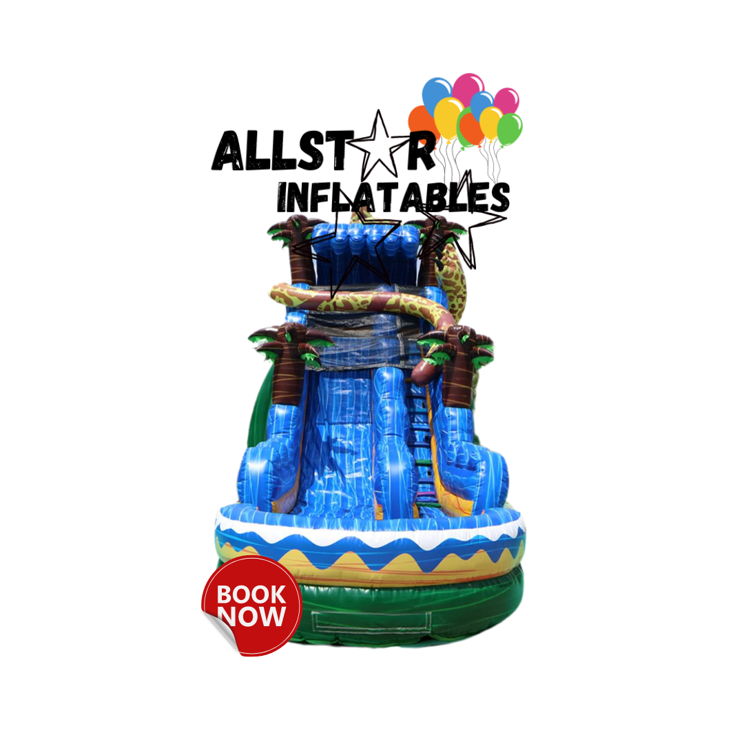 "Embark on a wild adventure through the heart of the Amazon with our 20 ft Amazon themed waterslide! This larger-than-life slide captures the spirit of the rainforest with its lush greenery, exotic animals, and cascading waterfalls, promising an unforgettable journey for thrill-seekers of all ages.